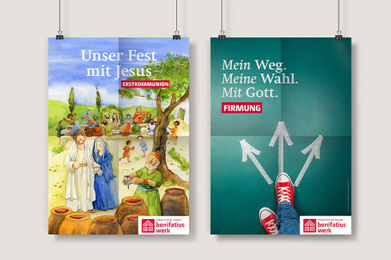 Die Leitworte und Bildmotive für die Erstkommunion- und Firmaktion des Bonifatiuswerkes für das Jahr 2027 wurden festgelegt: "Unser Fest mit Jesus“ – lautet das Leitwort der Erstkommunionaktion 2027. Es knüpft an die biblische Erzählung von der Hochzeit zu Kana (Johannes 2,1–11) an, in der Jesus Wasser in Wein verwandelt und so die Freude des Festes bewahrt. Die Firmaktion begleitet junge Menschen mit dem Motto "Mein Weg. Meine Wahl. Mit Gott." auf ihrem Weg des Glaubens. Plakatmotive zu den Leitworten stehen bereits zum Download bereit, weitere Materialien, wie das Begleitheft, werden ab Sommer verfügbar sein.