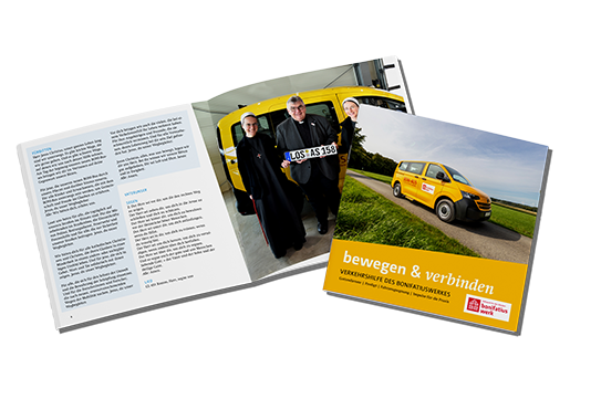 Der Infobrief „bewegen & verbinden“ informiert Sie zweimal jährlich über Neuigkeiten rund um die Verkehrshilfe des Bonifatiuswerkes. Die Gottesdienstbroschüre „bewegen & verbinden“ bietet zudem Anregungen für Fahrzeugsegnungen und Gottesdienste. Gerne senden wir Ihnen den Infobrief kostenlos zu; die Broschüre steht Ihnen ebenfalls kostenfrei zum Download zur Verfügung.
