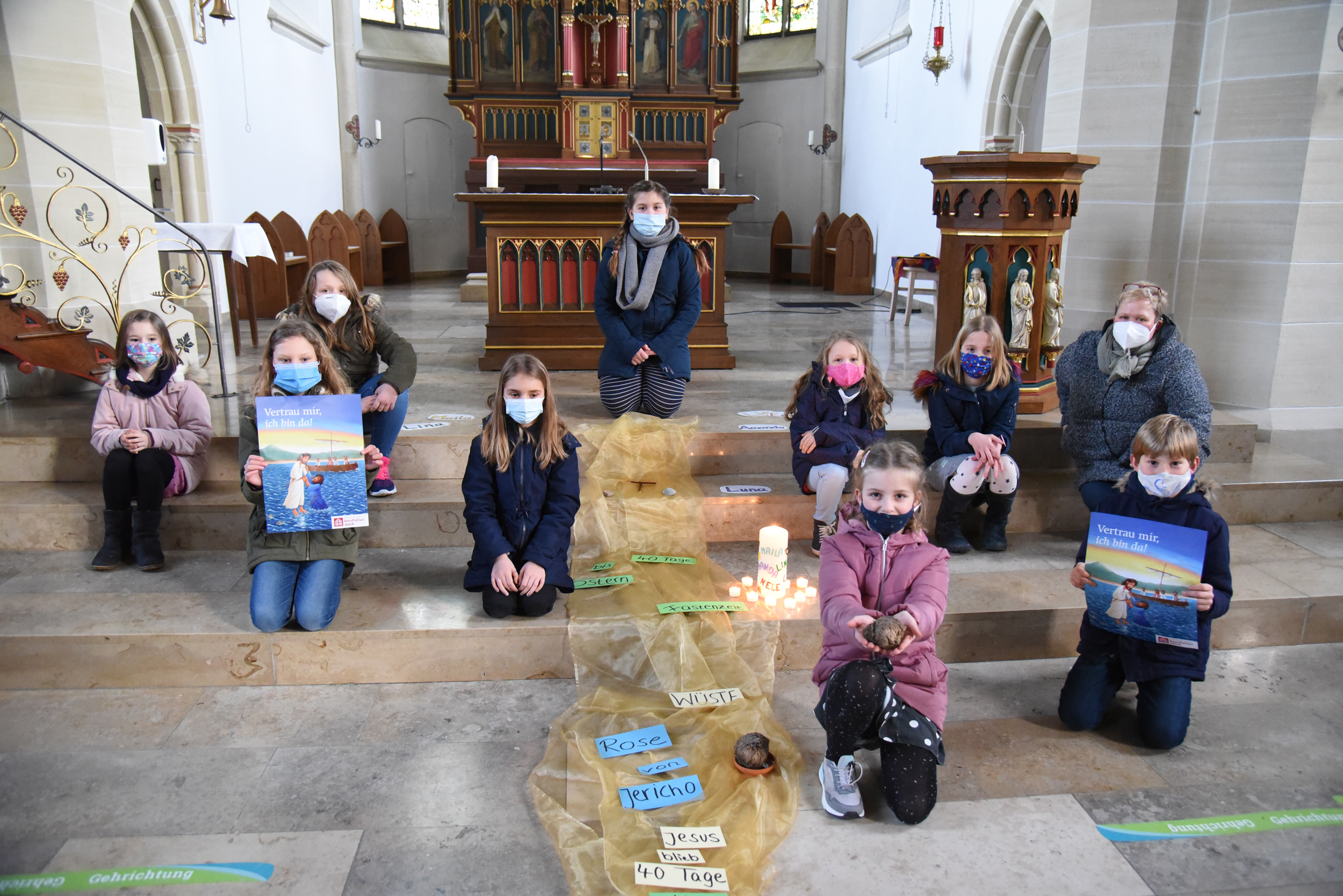 Begleitet werden die Kinder dabei vom Erstkommunion-Motto des Bonifatiuswerkes "Vertrau mir, ich bin da!" Das Jahresthema passe total gut in diese Zeit, erzählt Kreye. "Damit zu rechnen, dass Jesus immer da ist und immer noch da ist, auch wenn alles andere gefühlt den Bach runter geht", gebe Hoffnung und Zuversicht.
