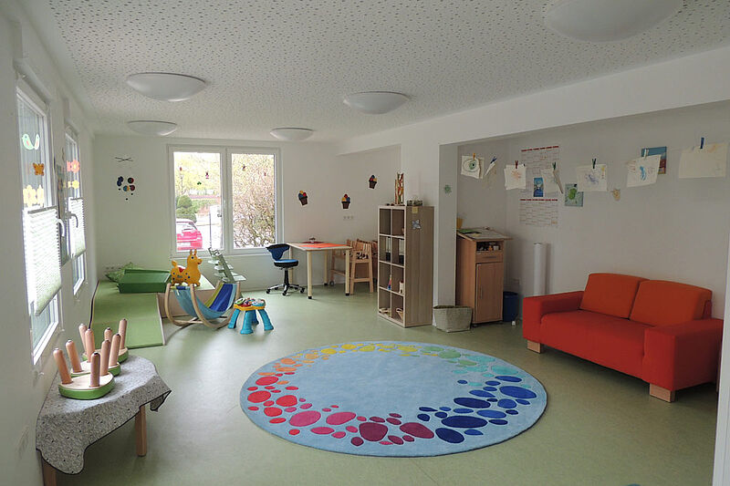 Die allgemeinen Vorgaben der Arbeitsstättenrichtlinie und die Anforderungen an Sozialräume wurden durch die Berücksichtigung eines Leitungsbüros, eines Mitarbeiterraumes in ausreichender Größe, einer Teeküche, Toiletten für die weiblichen und männlichen Mitglieder des Teams sowie der Möglichkeit Kinder zu wickeln, realisiert. Die Räumlichkeiten des Kindergartens St. Marien sind in übersichtlicherer Art und Weise strukturiert und verbessert worden, so dass die Einhaltung der Hygienevorschriften besser umsetzbar ist.