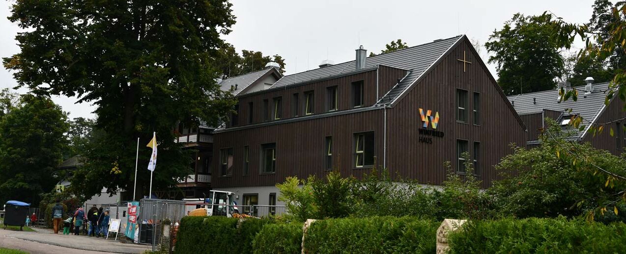 Das Winfriedhaus Dippoldiswalde hat nach umfangreichen Bau- und Sanierungsmaßnahmen am 18. September 2021 wieder seine Türen geöffnet: Die Kinder- und Jugendbildungsstätte des Bistums Dresden-Meißen war seit März 2019 für eine grundlegende Sanierung und Modernisierung geschlossen. Durch die baulichen Veränderungen stehen künftig vier Gruppenräume, die Kapelle, ein Saal, der „Meditationsboden“, eine Kreativwerkstatt, ein Freizeitraum und eine Gästeküche für den Kursbetrieb bereit. Insgesamt verfügt das traditionsreiche Haus nun über 70 Betten (mit Aufbettung 81 Betten), die auf 20 Gästezimmer mit jeweils eigener Nasszelle verteilt sind. Die feierliche Einweihung fand am Sonnabend von 14 bis 17 Uhr mit einem bunten Familien-Bühnenprogramm und Führungen durch das Haus statt. Um 17 Uhr feierte Bischof Timmerevers gemeinsam mit den Gästen einen Festgottesdienst und hat dabei das Haus offiziell eingeweiht. Den feierlichen Gottesdienst gestalteten viele Jugendliche mit: sei es in der Band, deren Mitglieder aus verschiedenen Dekanatsjugenden stammten, mit Gedanken zum Kyrie oder im Gespräch mit dem Bischof im Rahmen der "Predigt". Am Ende des Gottesdienstes überreichten drei Jugendliche, die mit dem Bischof zusammen die Predigt gestaltet hatten, eine "Wundertüte" an Hausleiter Stephan Schubert mit guten Wünschen für die nun wieder eröffnete Kinder- und Jugendbildungsstätte unseres Bistums.