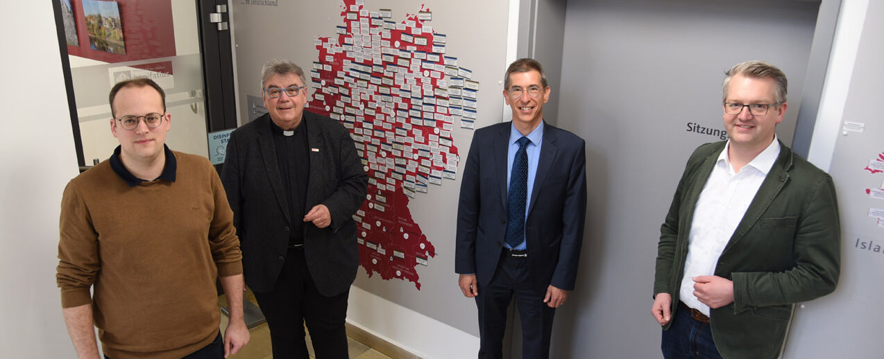 Der neue Vorsitzende des Diözesan-Bonifatiuswerkes Köln, Nadim Ammann, ist heute zu einem Antrittsbesuch in das Bonifatiuswerk in Paderborn gekommen. Nadim Ammann ist Leiter der Diözesanstelle Weltkirche – Weltmission im Erzbistum Köln. Neben einem allgemeinen Informationsgespräch erhielt Nadim Ammann Einblicke in die Arbeit des Bonifatiuswerkes. Der Generalsekretär des Bonifatiuswerkes, Monsignore Georg Austen, der Referent für Missionarische und diakonische Pastoral, Daniel Born, und der Bereichsleiter Projektverwaltung, Thomas Twents, tauschten sich mit ihm über die Missionsarbeit in Deutschland und Nordeuropa aus.
