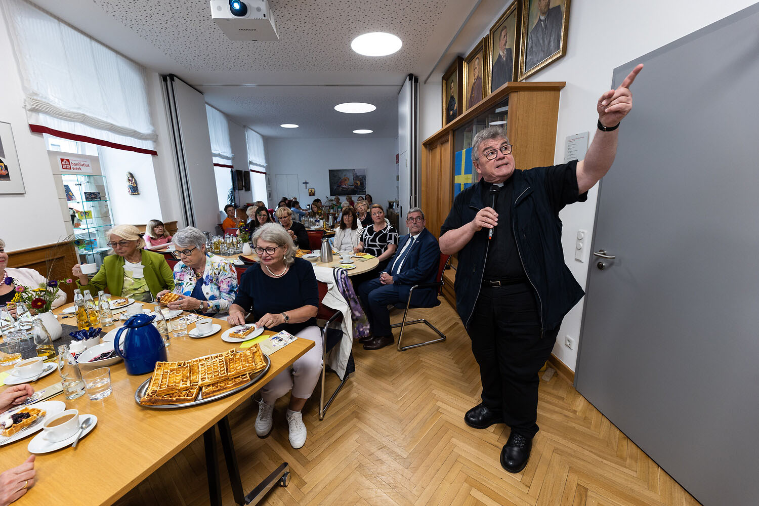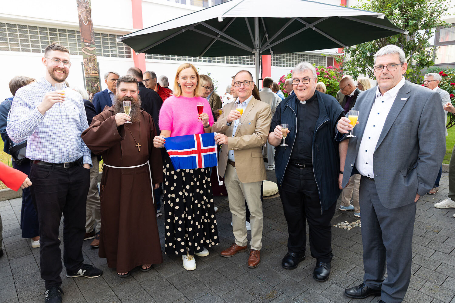 Monsignore Austen: "Das gesamte Libori-Programm des Bonifatiuswerkes war geprägt von persönlichen Begegnungen, geistlichen Impulsen und Gebeten, einem starken Gemeinschaftsgefühl und einem Kulturprogramm, das ausstrahlte." So durfte das Hilfswerk dieses Jahr wieder zahlreiche Gäste, Förderer und Spenderinnen im Bonifatiushaus empfangen. "Sie alle haben mit ihrem Besuch ein wertvolles Zeichen der Solidarität mit unseren Glaubensschwestern und -brüdern in der Diaspora gesetzt", so der Generalsekretär. Der Bonifatiushof im Schatten des Bonifatiushauses war an allen Libori-Tagen ein lebendiger Ort zum Feiern, Essen, Trinken und Tanzen. Gastronom Benedikt Paus sorgte mit einem bunten Mix aus Kultur und Kulinarik dafür, dass der Bonifatiushof mittlerweile mehr als ein Libori-Geheimtipp ist.