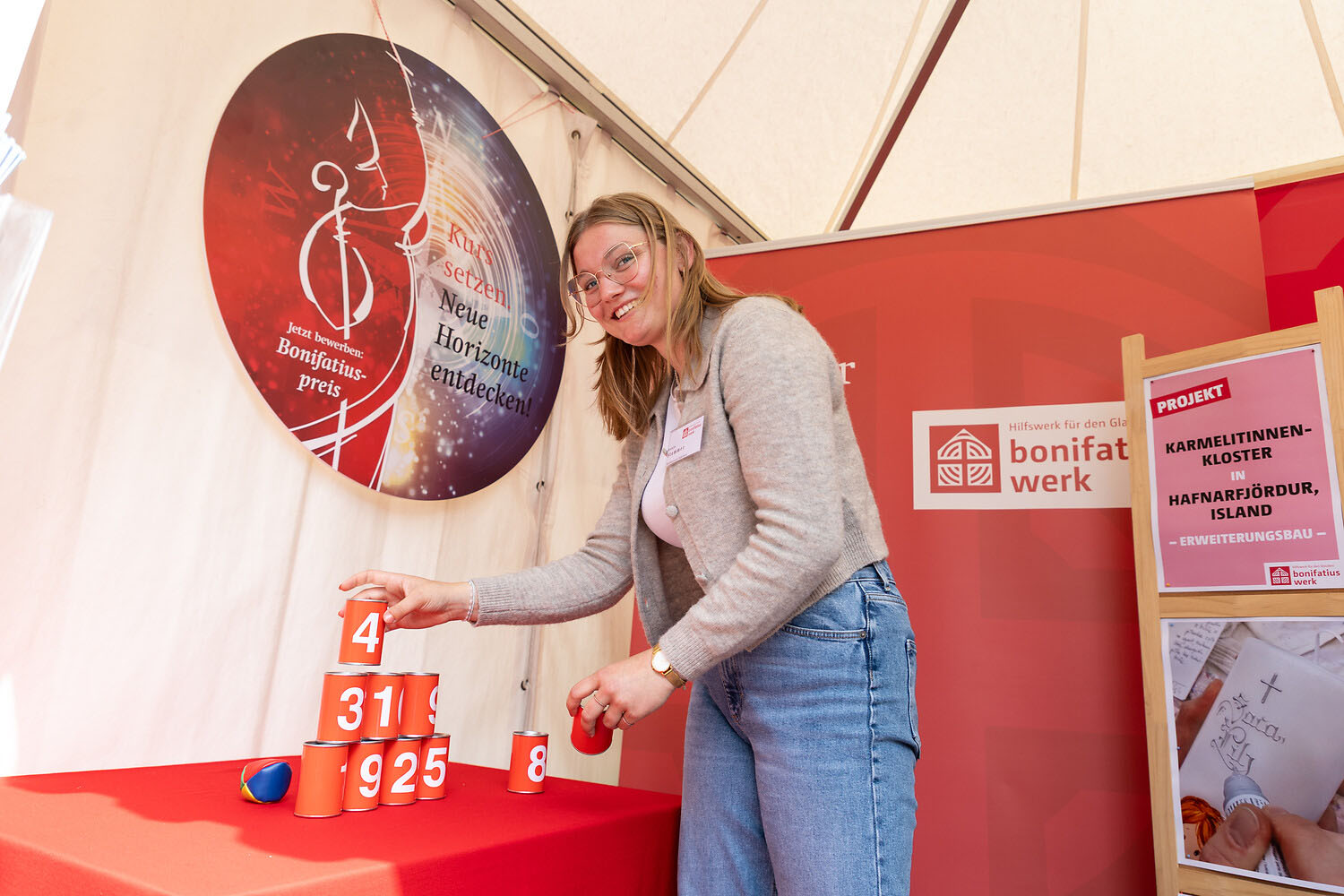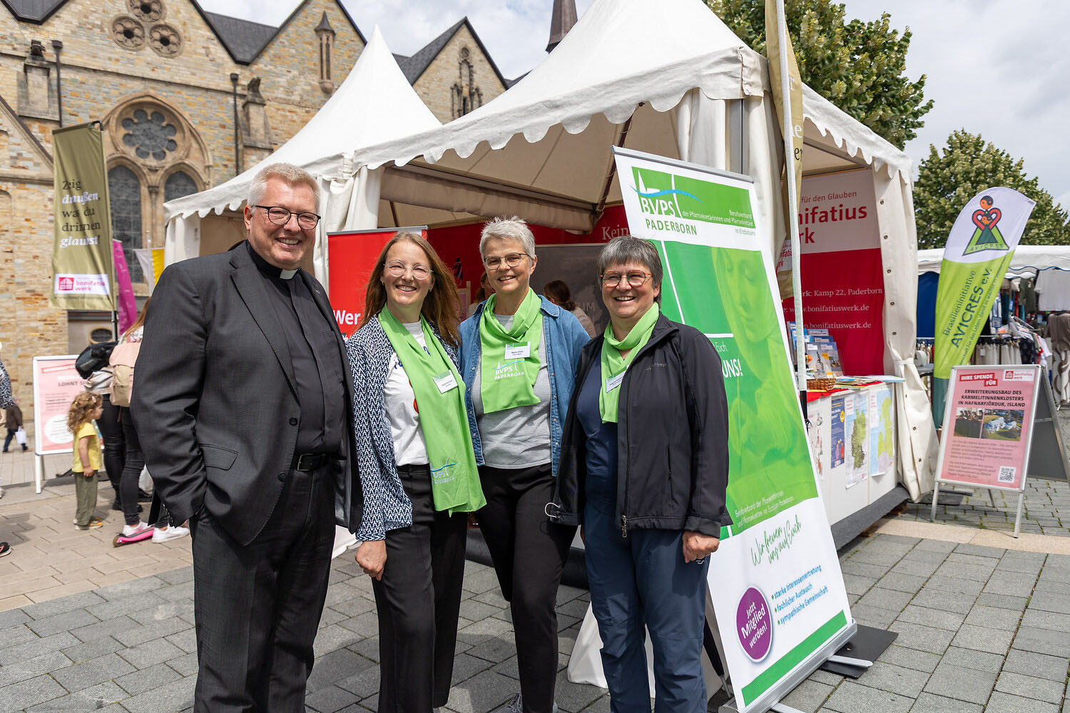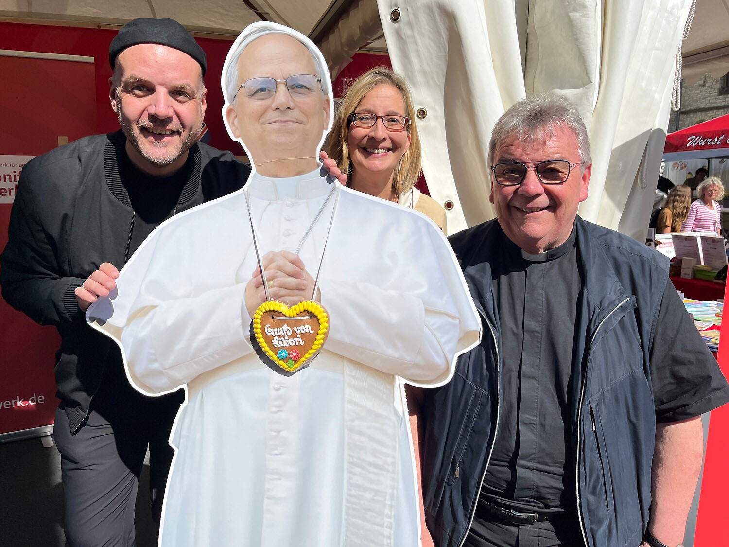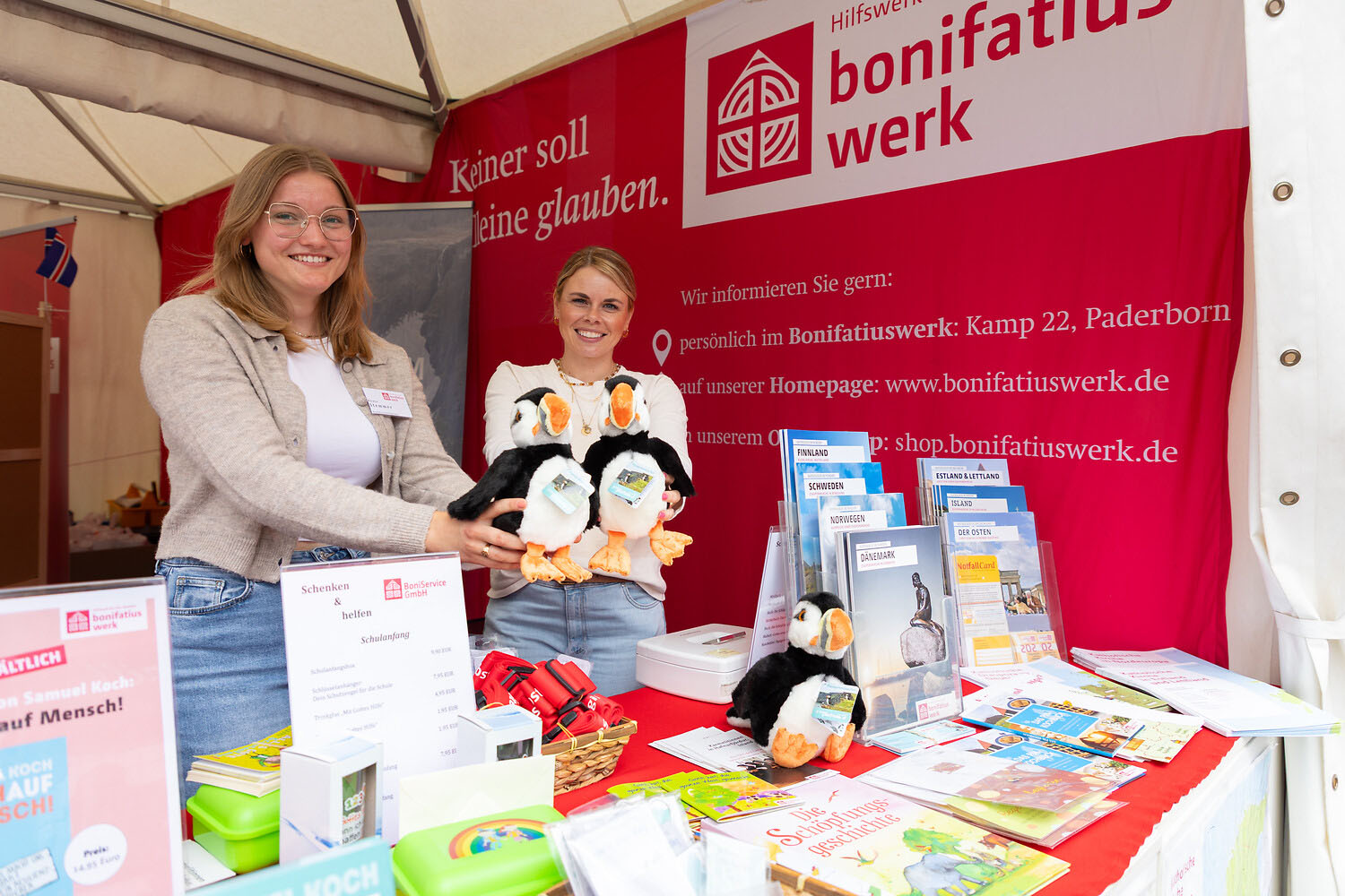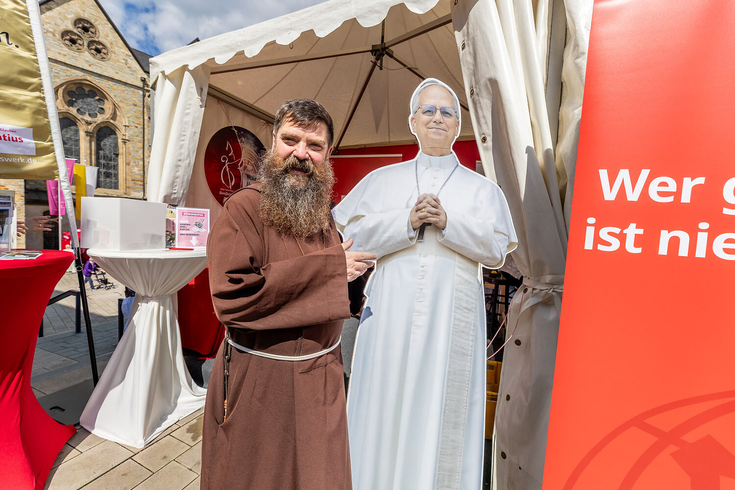 Neben dem besonderen Abendformat in der voll besetzten Marktkirche, das von vielen Zuschauern auch im Livestream und im TV-Programm des Senders EWTN verfolgt wurde, setzte das Bonifatiuswerk mit der traditionellen Diaspora-Andacht im Hohen Dom zu Paderborn einen wichtigen Akzent. Mehrere Hundert Menschen feierten die Andacht gemeinsam mit David Tencer, Bischof von Reykjavík/Island, und Monsignore Austen. Sie zeigten damit ihre Verbundenheit mit den Katholikinnen und Katholiken, die in einer extremen Minderheiten-Situation in der Diaspora leben. Ein weiterer zentraler Anlaufpunkt war der Infostand direkt am Paderborner Dom. Dort informierten Mitarbeitende über die Projektarbeit des Bonifatiuswerkes. Die Publikumsresonanz hat die Erwartungen gerade angesichts des durchwachsenen Wetters übertroffen.