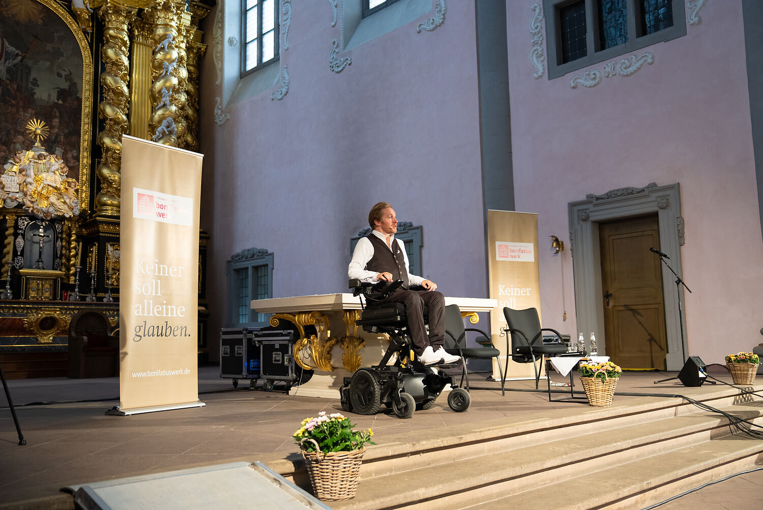 "An diesem besonderen Abend haben wir erleben dürfen, wie uns der gemeinsame Glaube in krisenhaften Zeiten innere Stärke schenken kann", sagte Generalsekretär Monsignore Georg Austen. Samuel Koch, der seit 2010 nach einem schweren Unfall während der ZDF-Show "Wetten, dass…?" im Rollstuhl sitzt, ließ die Gäste an seinen Gedanken und Gefühlen teilhaben. Sein Credo: "Jeder Mensch ist wertvoll." Unabhängig davon, was sie oder er an Leistung bringe. Als Kämpferin, die sich nicht mit den eigenen Grenzen begnügen will, zeigte sich die nicht sehende Sängerin Bernarda Brunovic. Die Künstlerin hat ihre Sehkraft aufgrund einer Augenkrankheit vollständig verloren. Ihr Glaube gebe ihr die innere Stärke, dieser Herausforderung zu begegnen, so Bernarda Brunovic.