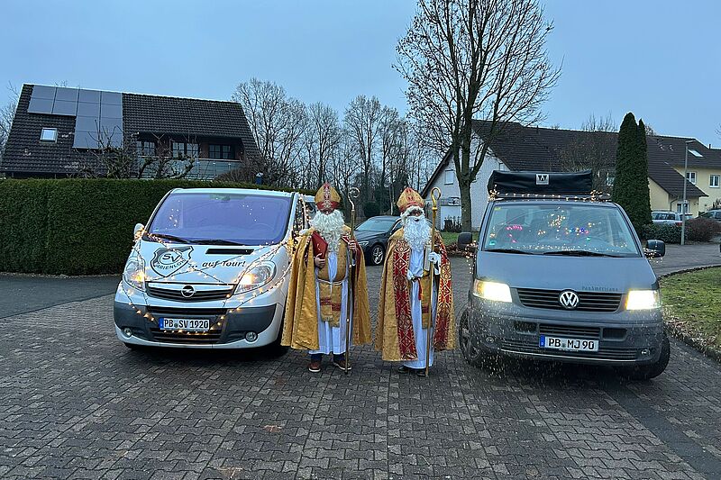 Am Abend des 5. Dezembers zog ein außergewöhnliches Duo durch Paderborn-Marienloh: Zwei Nikoläuse machten sich anlässlich der "Tat.Ort.Nikolaus"-Aktion des Bonifatiuswerkes in liebevoll dekorierten Bullis auf den Weg durch den Ort. Entlang der Straßen und an verschiedenen Plätzen warteten Familien, Kinder und ältere Menschen gespannt darauf, den Bischof von Myra und seinen mit Lichterketten geschmückten Bus zu sehen.