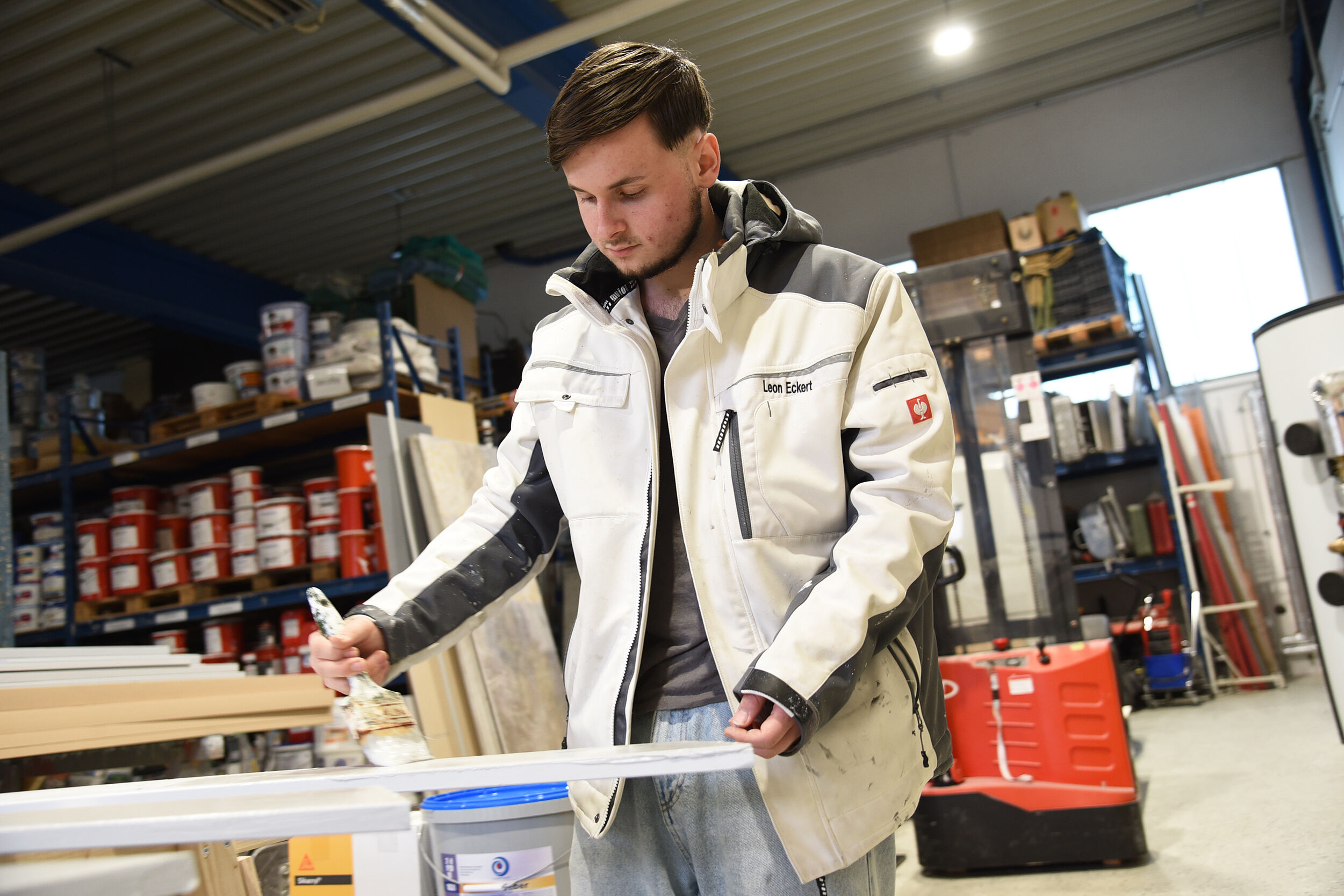 Die praktischen Berufserfahrungen, die der 17-jährige Brian im Betrieb von Malermeister Ahle sammeln konnte, bestärken ihn in dem Wunsch, nach der Schule eine Ausbildung zum Maler und Lackierer zu machen: "Mir macht die Arbeit einfach Spaß. Ich habe schon Erfahrungen in dem Bereich gesammelt, konnte jetzt aber noch einige Dinge während dieses Praktikums lernen." Für ihn sei die Zusammenarbeit mit den Kollegen bei so einem Job sehr wichtig.
