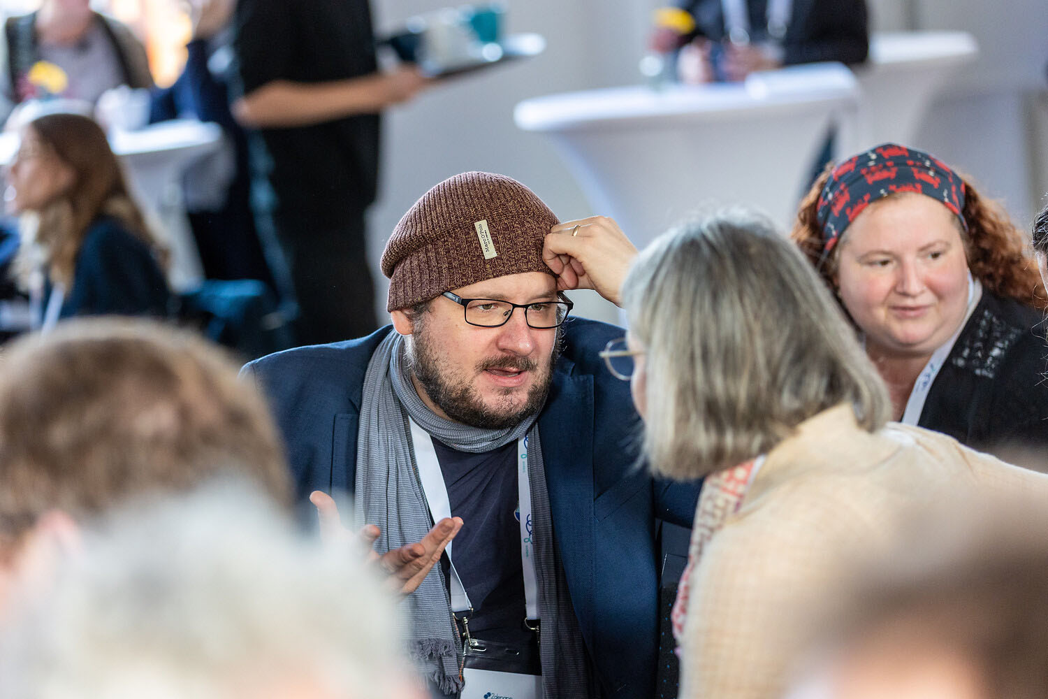 Darunter waren viele Projekte, die das Bonifatiuswerk gefördert hat – wie die "AnküpfBar", ein kostenfreier Co-Working-Space mit spirituellem Angebot, angesiedelt im Katholischen Dekanat Böblingen. Annegret Hiekisch und Antonia Schneider stellten sich gerne den Fragen der Interessierten. Beide berichteten, dass die Initiative mittlerweile 70 regelmäßige Nutzerinnen und Nutzer zählt. Als "sehr inspirierend" hat Dekanatsreferentin Annegret Hiekisch die Konferenz erlebt: "Wir nehmen viele, auch kleine Ideen für die Arbeit vor Ort mit", sagte sie. Netzwerken und von anderen lernen – das sei der größte Mehrwert der Konferenz.