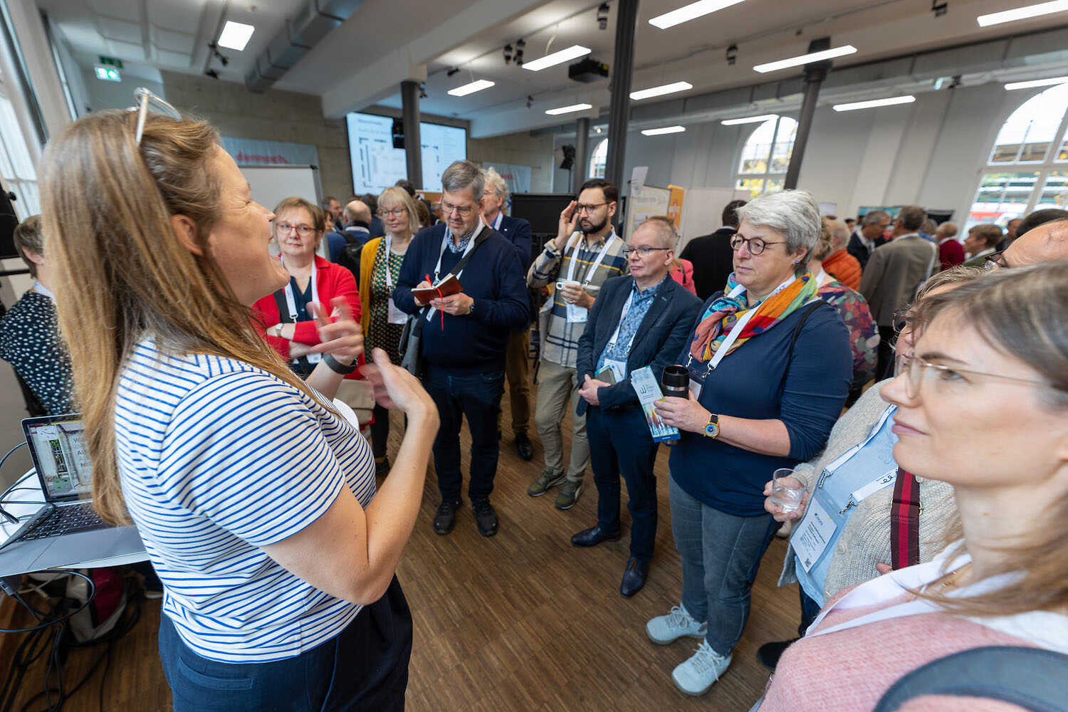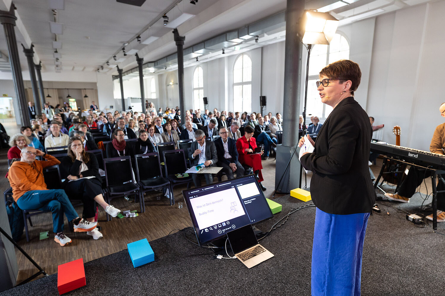 Am ersten Tag der Konferenz standen die Key-Note-Speaker im Vordergrund – zu ihnen gehörten Anna Reppel vom Pixel Sozialwerk Erfurt, Bernhard Hanel (KuKuk Gmbh, Wernau/Neckar) und Oliver Mergens (VAUDE Academy, Tettnang/Bodenseekreis). Vor allem der Impuls von Prof. Dr. Sandra Bils traf den Nerv. Die evangelische Theologin und Professorin für Transformation in Kassel und Jena sprach zum Thema "Exnovation" – die bewusste Trennung von Praktiken, Technologien oder Systemen, die nach einer gründlichen Reflexion keinen Mehrwert mehr haben und nicht mehr zeitgerecht sind. Auf die pastorale Arbeit übertragen, formulierte Prof. Bils diese Sinnfragen: "Was halte ich in meinem Alltag aufrecht, obwohl es keinen echten Beitrag leistet? Was muss ich loslassen, damit wieder Energie für Neues frei wird." Auch in der Kirche sei es notwendig, vormals erfolgreiche, nun aber zum Ballast gewordene Projekte abzuwerfen. Prof. Bils: "Viele frische Innovationen in der Kirche starten erst gar nicht, weil das System ihnen keinen Platz einräumt." Ihr Vortrag endete mit großem Applaus.