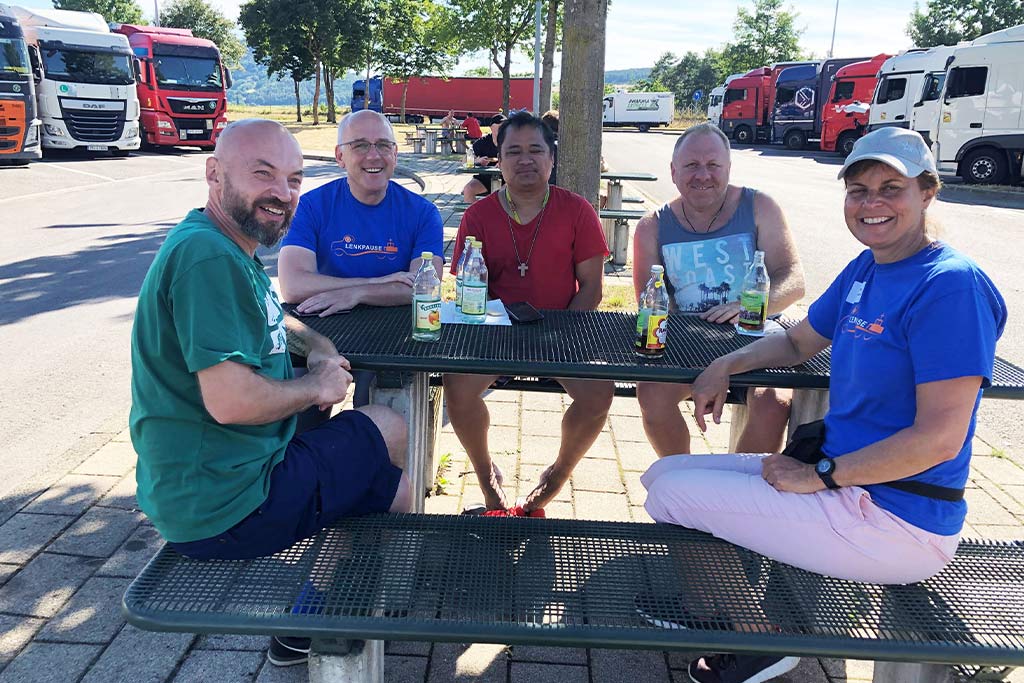 Das Projekt “Lenkpause für Körper und Seele” der Betriebs- und Fernfahrerseelsorge Bodensee-Hohenzollern im Erzbistum Freiburg hat den zweiten Platz mit 4.000 Euro gewonnen. Entstanden ist die Idee im ökumenischen Netzwerk “Kirche und Arbeitswelt im Hegau”. Das Projekt lenkt den Blick zu den Menschen, die häufig unsichtbar bleiben und keine gesellschaftliche Aufmerksamkeit erfahren: die Fernfahrerinnen und Fernfahrer. Seit 2018 kommen Seelsorgerinnen und Seelsorger gemeinsam mit Ehrenamtlichen dorthin, wo die Fahrerinnen und Fahrer sind: auf die Rastplätze entlang der Autobahn in Hegau in Baden-Württemberg und am Zollamt zur Schweiz. Sie schenken Zeit, offene Ohren – und vor allem Respekt. Es werden Gespräche geführt, Sorgen geteilt und Geschenke verteilt. Das Team der Lenkpause hört Geschichten von Entbehrung und Einsamkeit. Es fallen Sätze wie: “Ich fahre seit über 30 Jahren Lkw, aber noch nie hat sich jemand für meine Arbeit bedankt”, oder: “Wie malen Kinder ein Auto? Immer ohne Fahrer – und so fühle ich mich: ungesehen.” Bei dieser Seelsorge auf dem Asphalt werden bis zu 100 Fahrerinnen und Fahrer erreicht. Drei- bis viermal im Jahr wird eine solche Lenkpause angeboten.