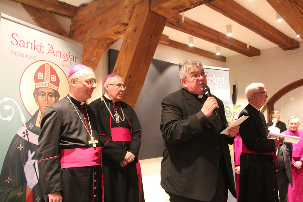 Der Generalsekretär betonte in seinem persönlichen Grußwort die Gemeinsamkeiten des heiligen Ansgars und des heiligen Bonifatius, Namenspatron des Bonifatiuswerkes, und lud zu einem Gedankenspiel ein: Betrachte man die Lebenswege Ansgars und des heiligen Bonifatius auf der europäischen Landkarte, entstehe “ein großes Kreuz mitten in Europa”. Bonifatius, der “Apostel der Deutschen”, wirkte von Westen nach Osten. Ansgar brach vor 1.200 Jahren vom Kloster Corvey in Westfalen auf – Richtung Dänemark und Schweden. Monsignore Austen: “Es mag Zufall sein, dass die Lebenswege der beiden Missionare das Zeichen der Christen bilden.” Es sei jedoch historisch betrachtet gewiss kein Zufall, dass sich ihre Pfade kreuzen und weite Teile Europas verbinden. Die ehemalige Benediktinerabtei Corvey nahe Höxter – heute UNESCO-Weltkulturerbe – gilt als eines der bedeutendsten geistlichen Zentren des frühen Mittelalters. 2024 war es Austragungsort der Feierlichkeiten zum 50-jährigen Bestehen der Nordeuropahilfe des Bonifatiuswerkes. Seit 1974 unterstützt das Hilfswerk für den Glauben und die Solidarität die Länder der Nordischen Bischofskonferenz. In den vergangenen zehn Jahren stellte es dort mehr als 14 Millionen Euro an Fördermitteln bereit. Ergänzt wird diese Hilfe durch das Diaspora-Kommissariat der deutschen Bischöfe, das im selben Zeitraum mehr als 43 Millionen Euro für Nordeuropa zur Verfügung stellte – getragen durch die Solidarität der Priester in Deutschland.