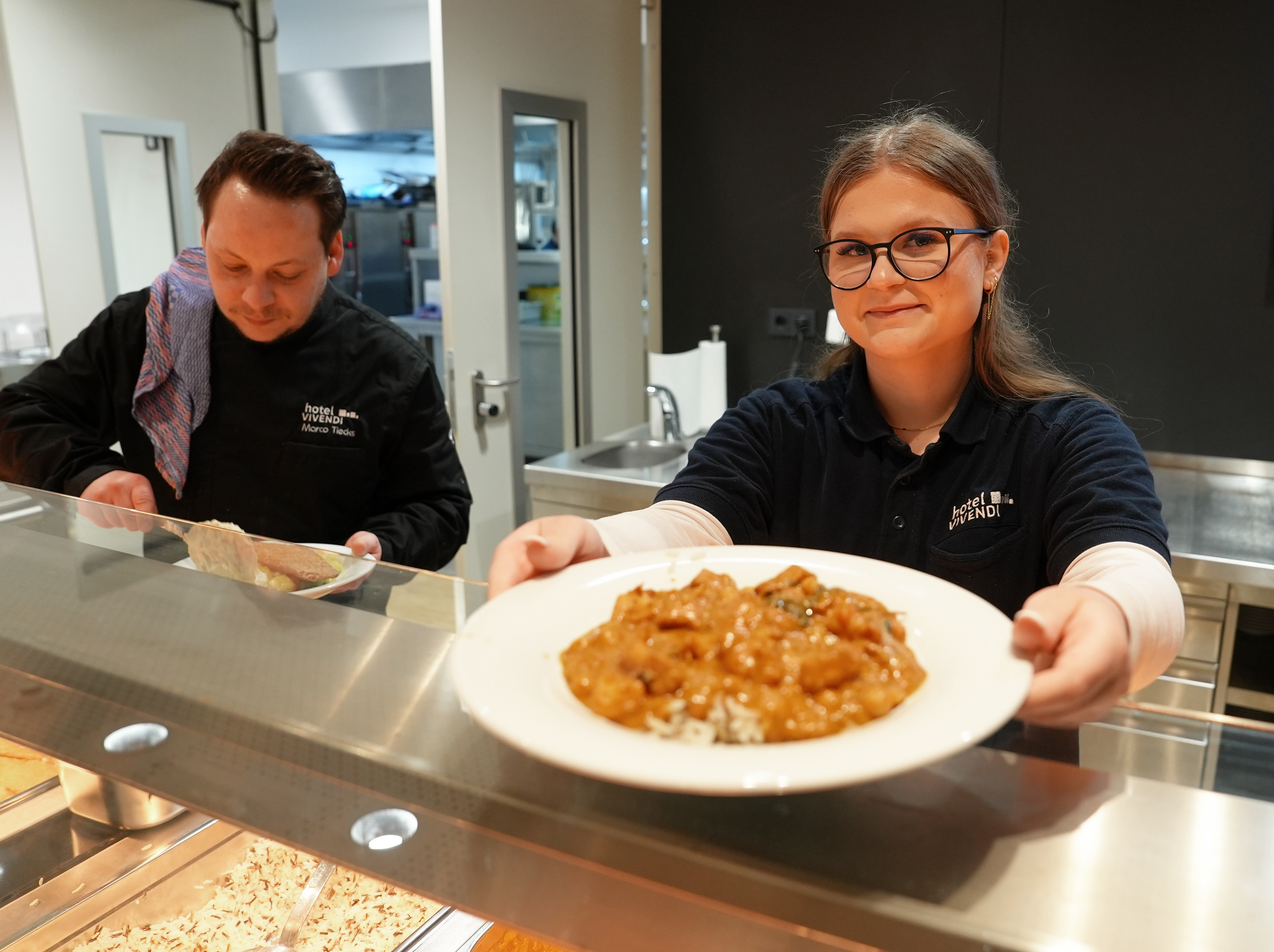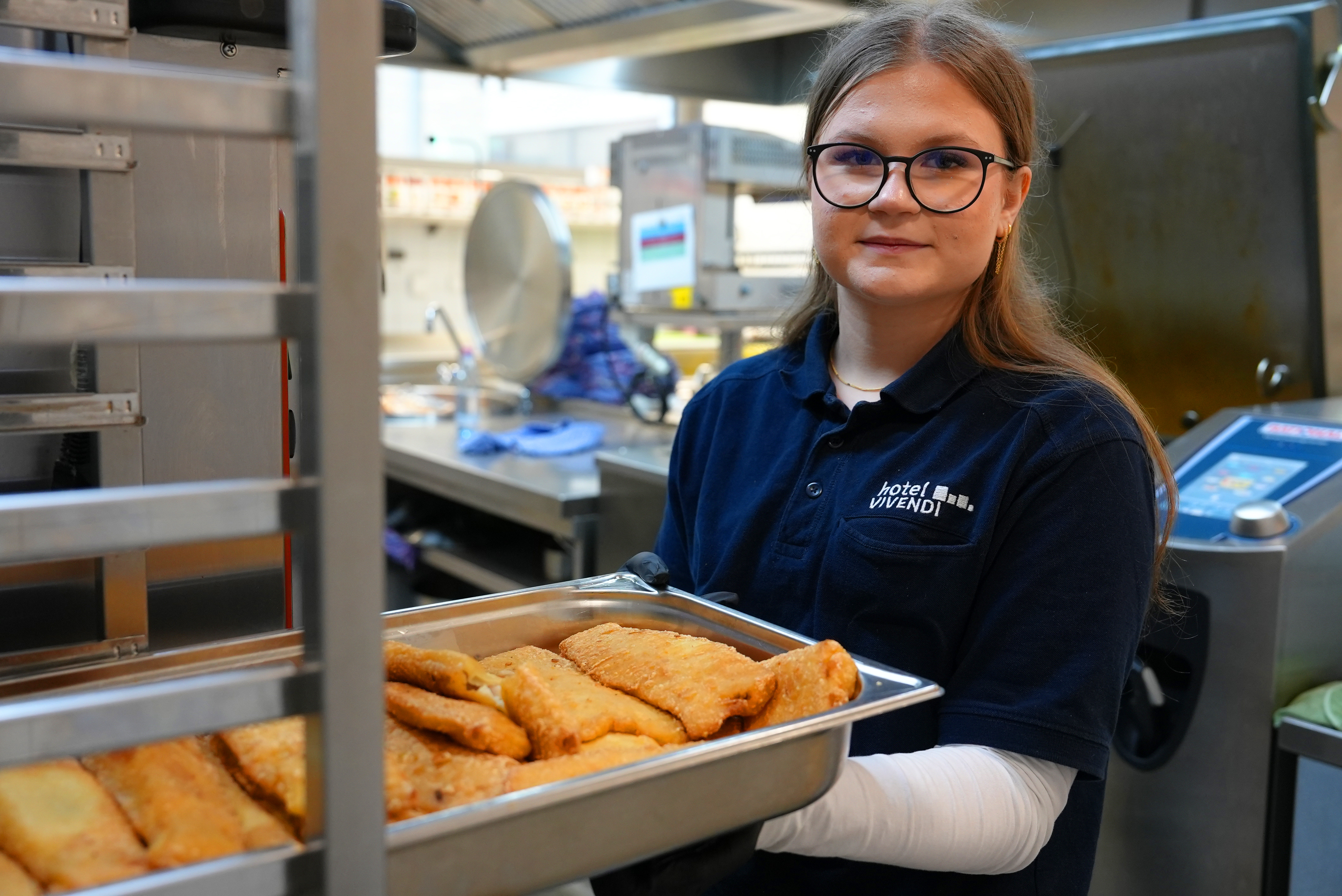 Eine der Teilnehmenden war die 17-jährige Lea. Sie absolvierte ihr Praktikum in der Küche des Hotel Vivendi und unterstützte dort das Team bei den täglichen Vorbereitungen. Mal schnitt sie Tomaten für ein Fischgericht, mal kümmerte sie sich um die Suppe oder half bei der Essensausgabe: "Mir hat die Arbeit viel Spaß gemacht, mir gefällt am meisten die Essensausgabe. Es war interessant zu erfahren, wie es in so einer Küche aussieht und abläuft. Ich habe hier viel gelernt", berichtet die Schülerin.