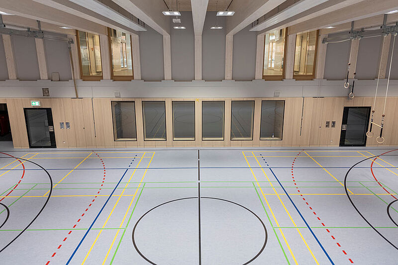 Der Neubau der katholischen Sophienschule wurde nach den Anforderungen einer zeitgerechten, differenzierenden Grundschulpädagogik entwickelt. Lernlandschaften mit Klassenräumen, Beratungs- und Differenzierungsräumen gruppieren sich um großzügige “Marktplätze”, die individualisiertes Lernen ebenso ermöglichen wie Phasen der Entspannung und des freien Spiels. Foyer, Aula und Mensa im Erdgeschoss sowie Fachräume, Bibliothek, Lern- und Gruppenräume in den beiden Obergeschossen ordnen sich zudem um einen offenen dreigeschossigen Erschließungsbereich. Eine einladende Lesetreppe soll künftig als zentraler Begegnungs- und Lernort sowie für Vorlesepausen und Autorenlesungen dienen. Für die Ermöglichung digitaler Bildung ist die Schule mit moderner digitaler Infrastruktur ausgestattet worden. Als spiritueller Mittelpunkt soll in den kommenden Monaten noch ein Raum der Stille mit hölzerner Wand- und Deckenverkleidung entstehen – als Rückzugsort, zum Innehalten und zum gemeinsamen Gebet. Das Bonifatiuswerk fördert diesen Raum der Stille mit 75.000 Euro.
