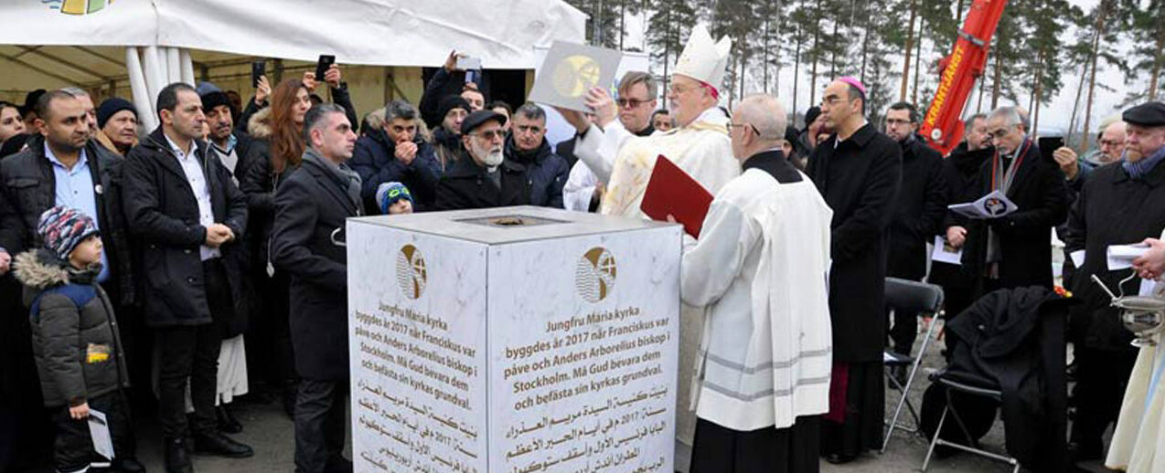 Den Auftakt zum Bau bildete das Fest zur Grundsteinlegung am vergangenen Samstag. Bischof Anders Arborelius OCD segnete den Grundstein, der später in die Wand der neuen Kirche eingemauert wird. Die Andacht wurde in mehreren Sprachen gefeiert, u.a. in Schwedisch, Englisch und Arabisch und spiegelt die internationale Zusammensetzung der Gemeinde wieder.